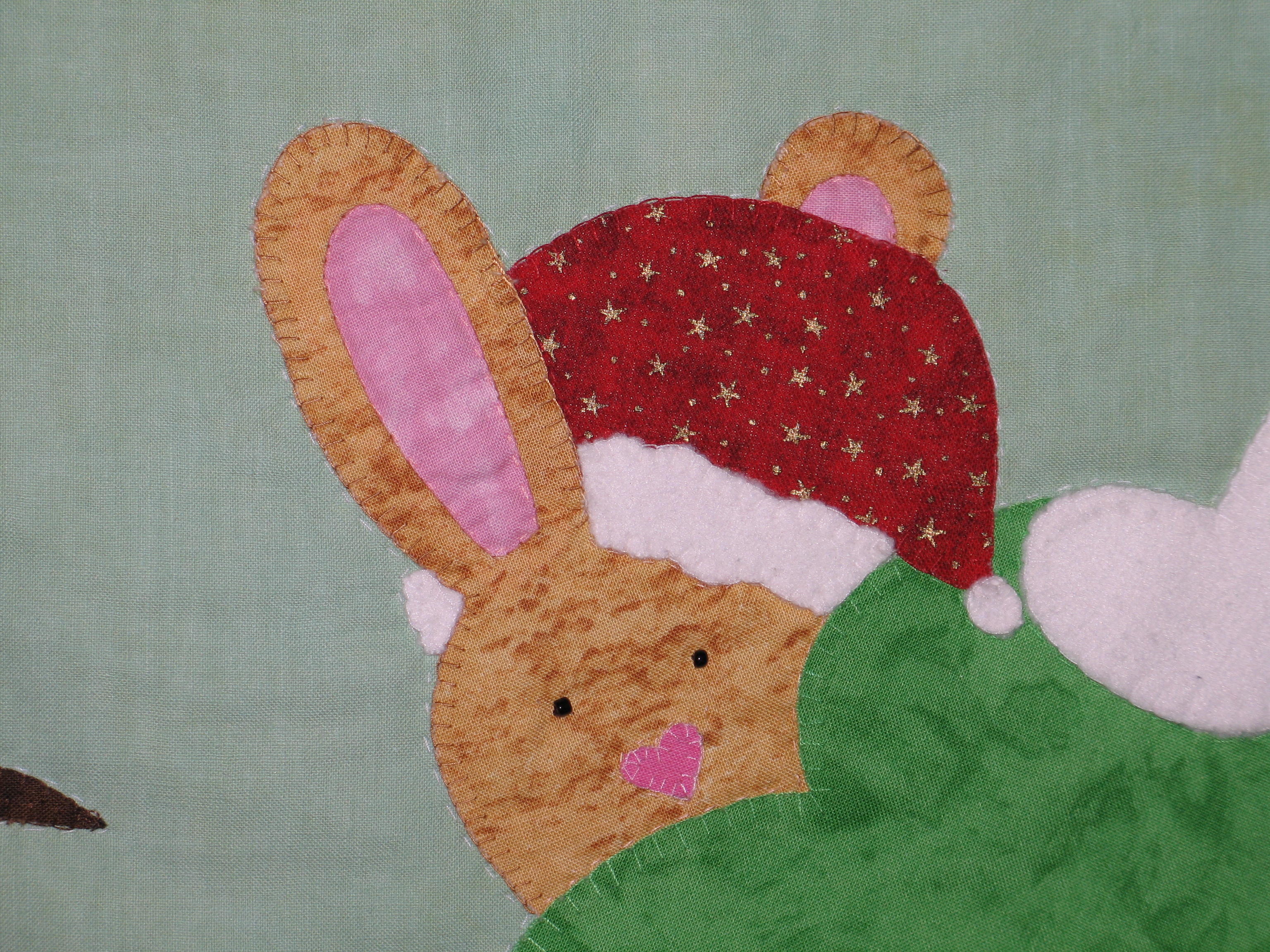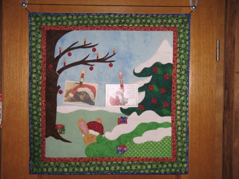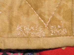 Ein Roundrobin wird von mehreren Leuten genäht, in diesem Fall hat jeder einen oder zwei Blöcke („Bilder“) gestaltet, welche dann zu einem Quilt zusammengefügt wurden.