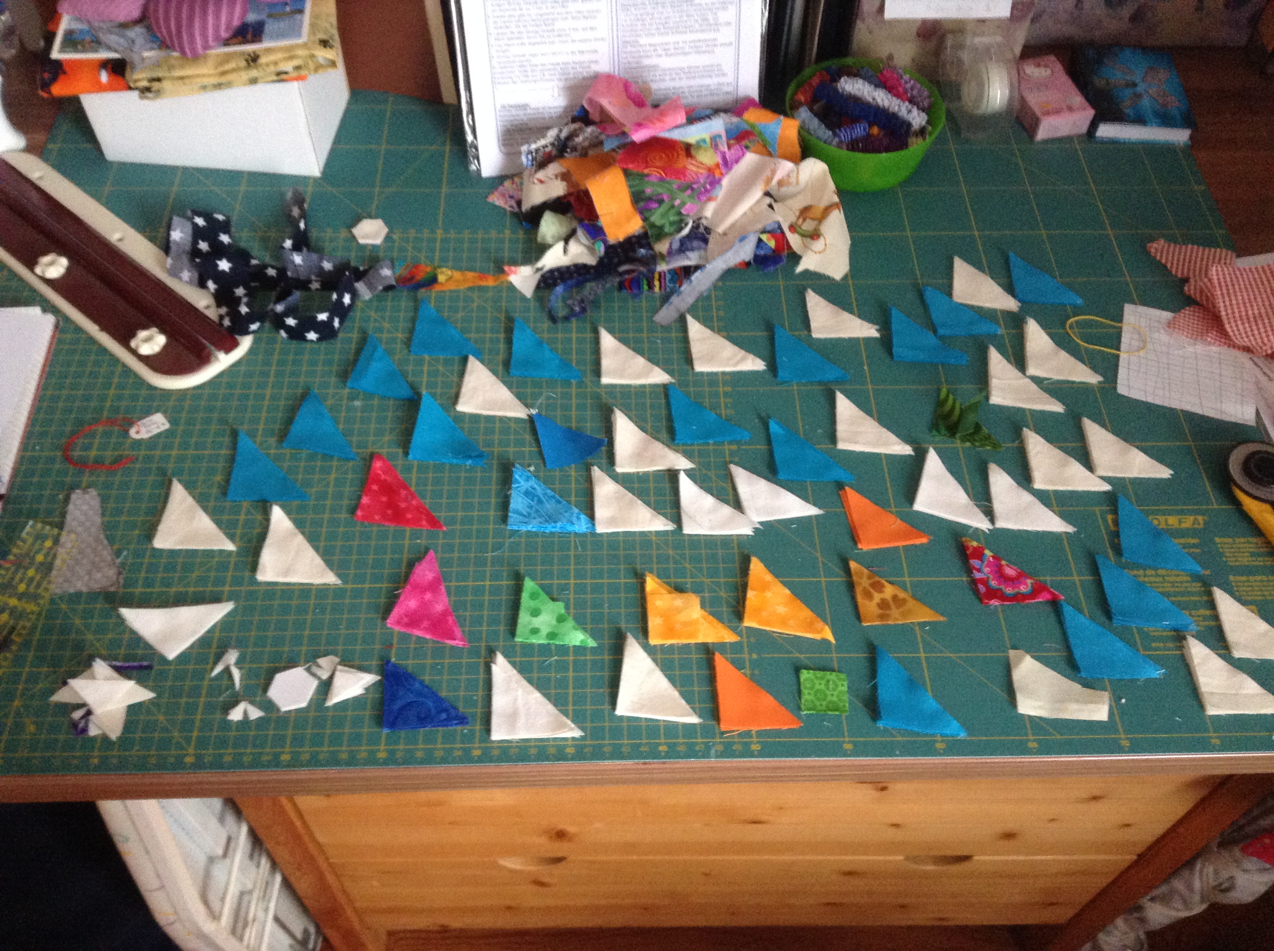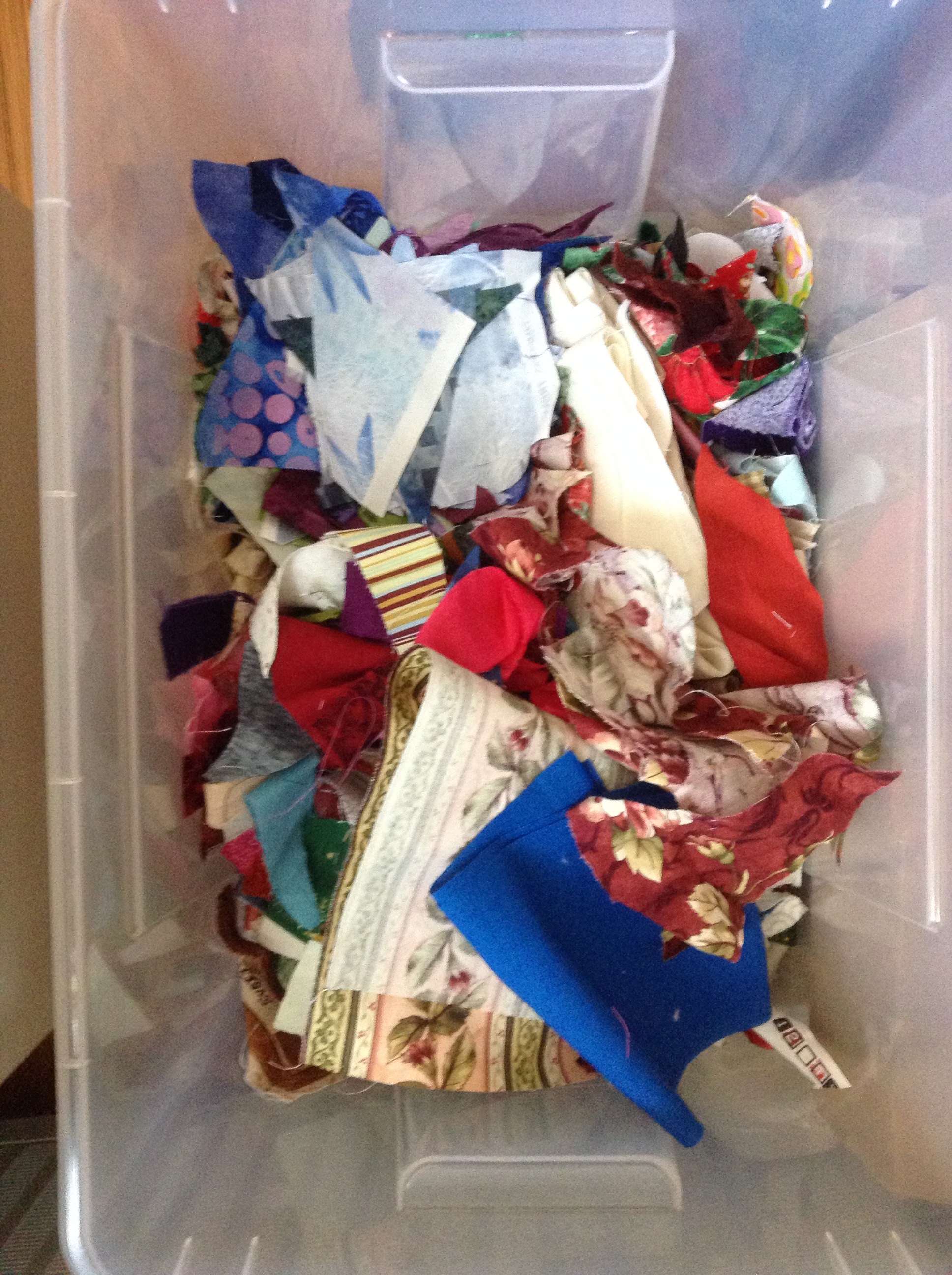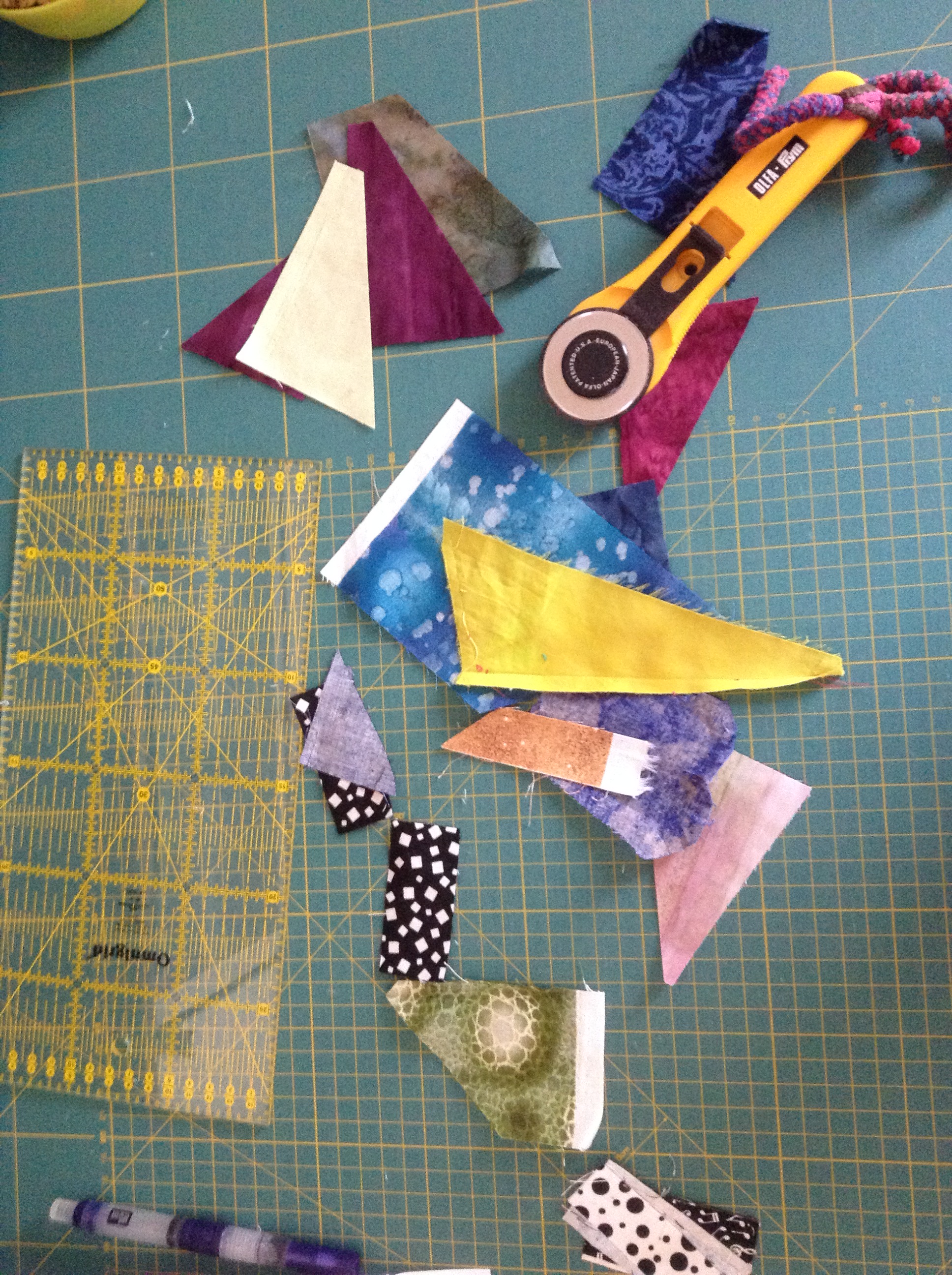 …..and getting all kinds of fabric scraps in shape with my rotary cutter, ruler and other scissors….