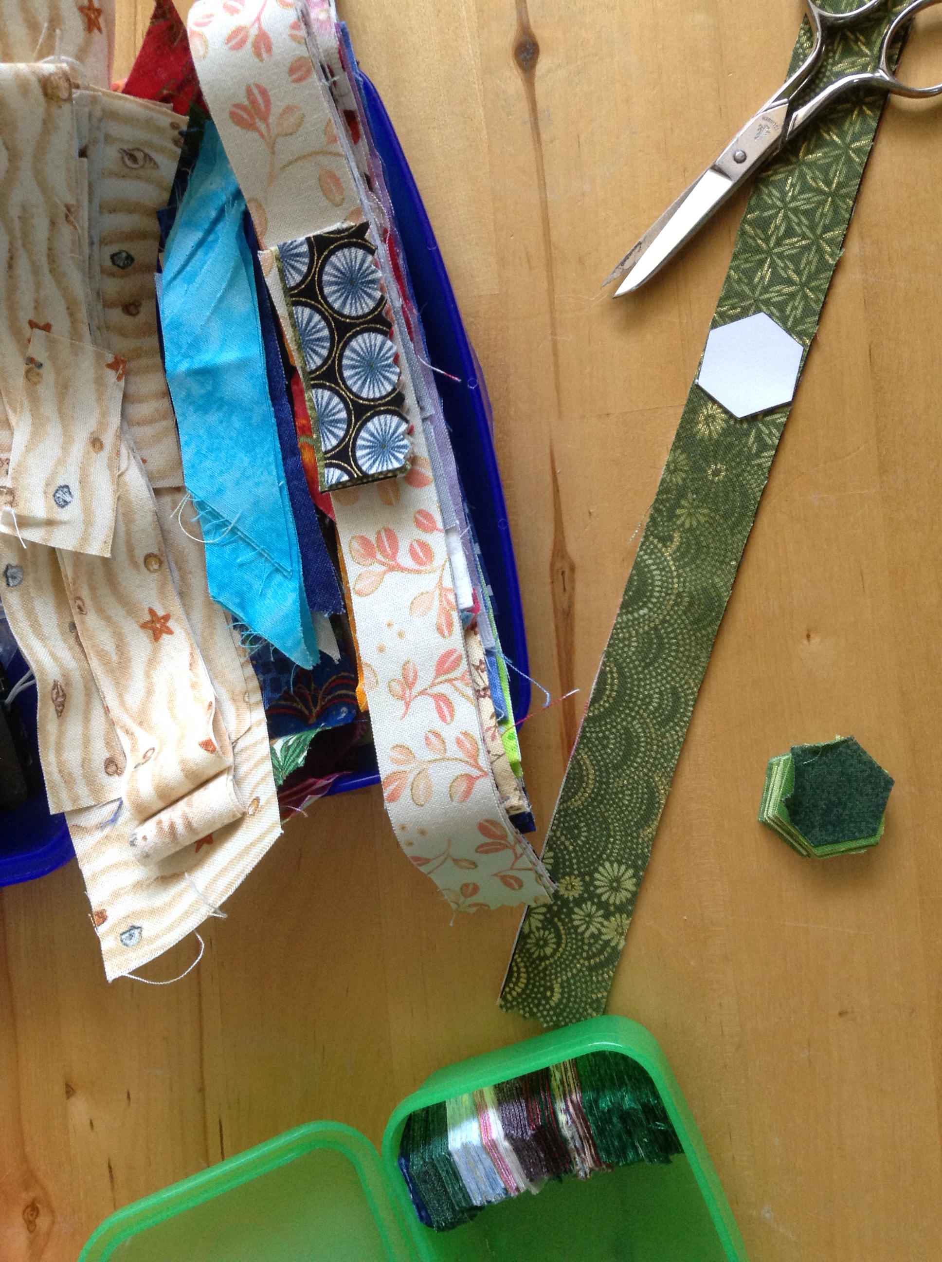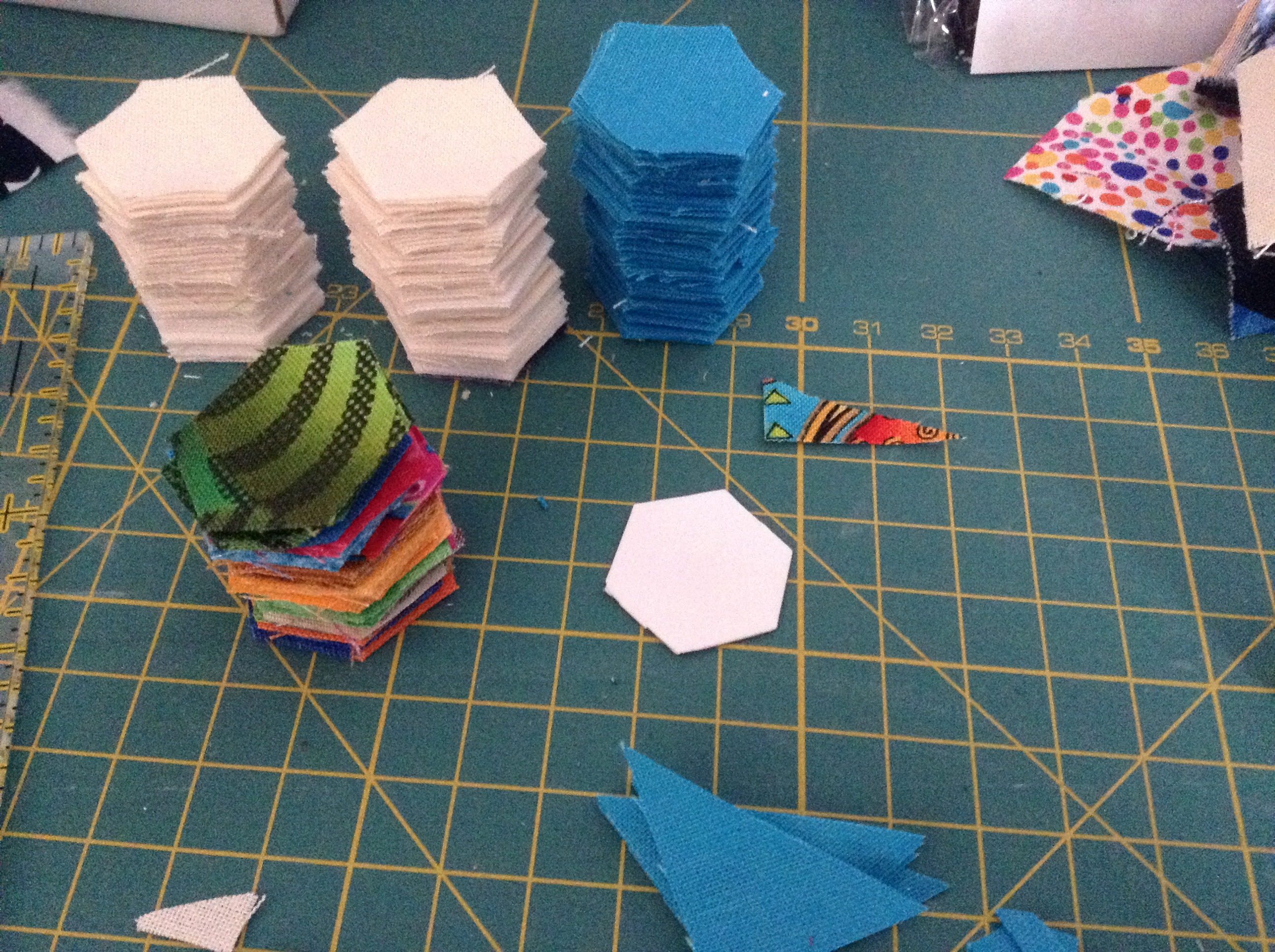 ….spending hours and hours basting paper and fabric to 1/4 inch hexies….