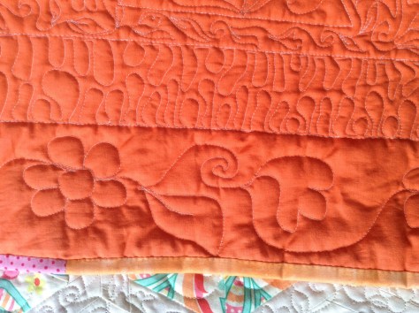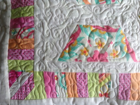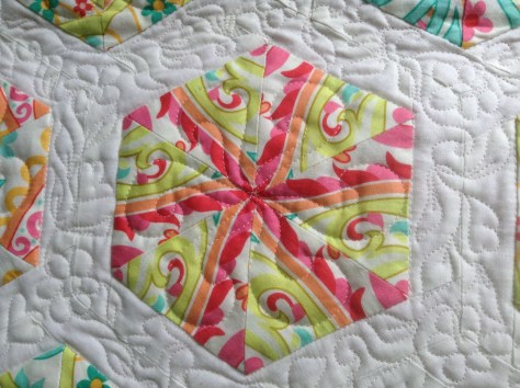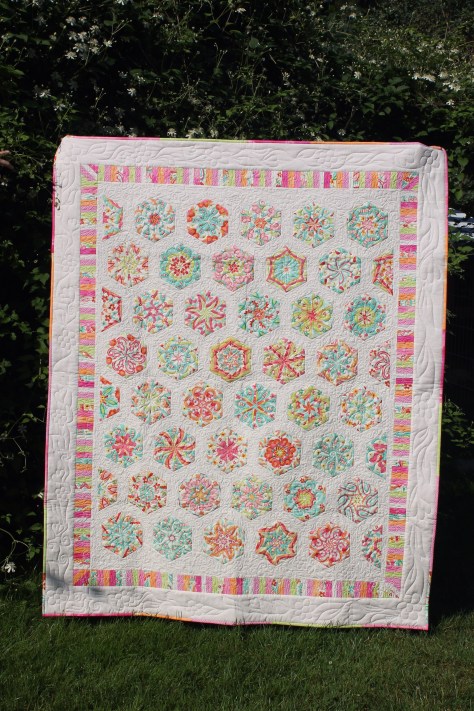 Von den Weserbergländer Herzen helfen e. V. habe ich mir Stoff schicken lassen, um Spendenquilts für SOS Kinderdörfer zu nähen. Ein bisschen hat es mir vor den Kurven gegraut, aber es hat wirklich super geklappt, Mut zur Rundung!