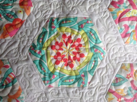 I got the fabric from Weserbergländer Herzen helfen e. V. a public charity organisation. They give quilts to SOS Childrenvillages here in germany. I was a bit apprehensive about the curves, but it worked out wonderfully.