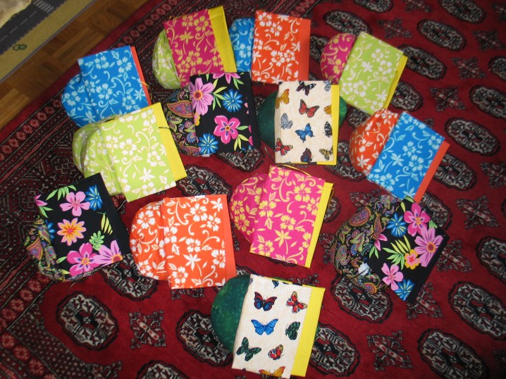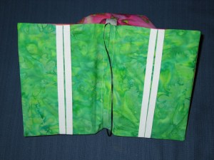 Die Blöcke hat eine Freundin mit meinen Lieblingsstoffen genäht. Als Gegenleistung habe ich dafür die Bilder in den Blöcken die sie für sich genäht hatte gestickt und appliziert.