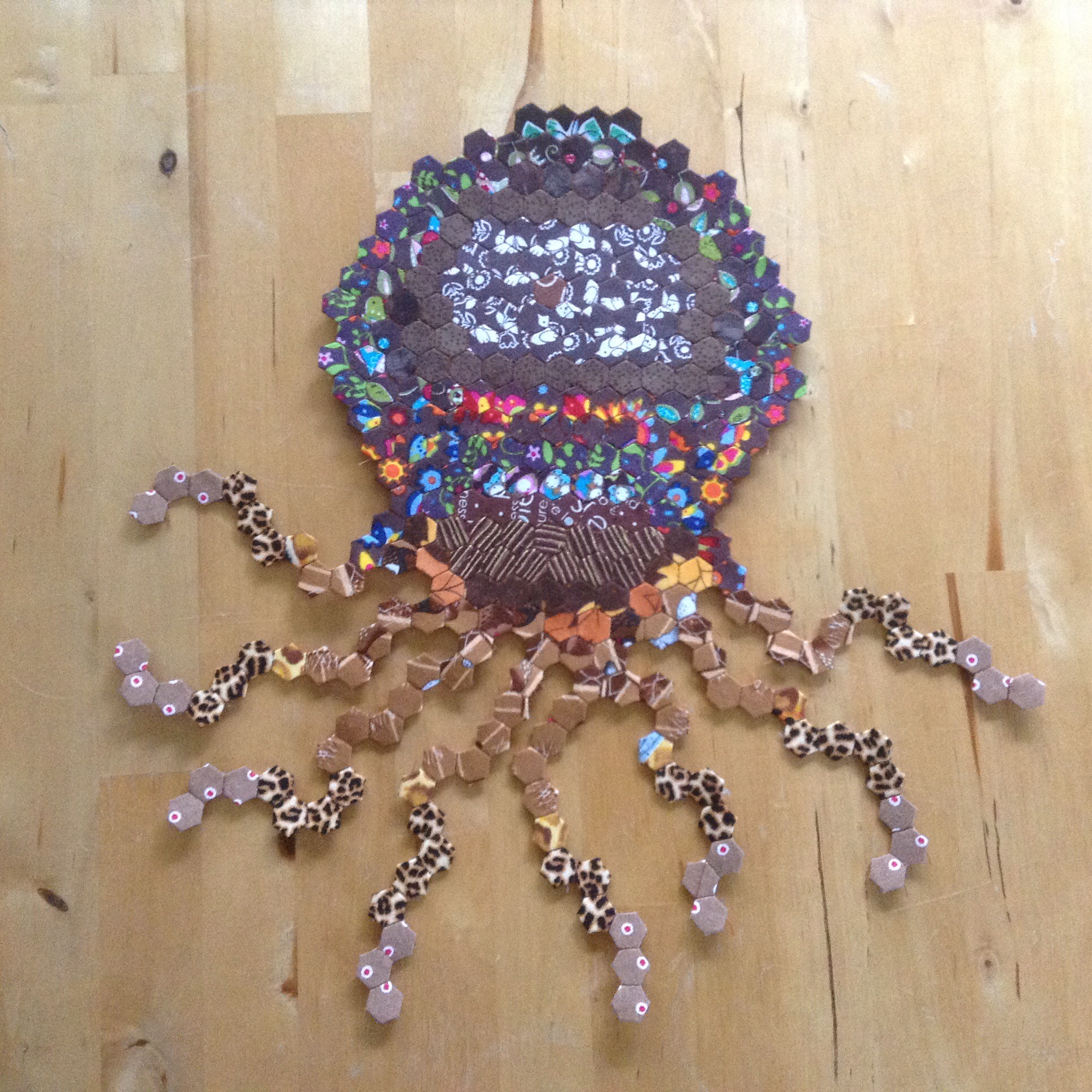 …Stunde um Stunde Stoff und Papier zu 1/4 inch Sechsecken verarbeitete….