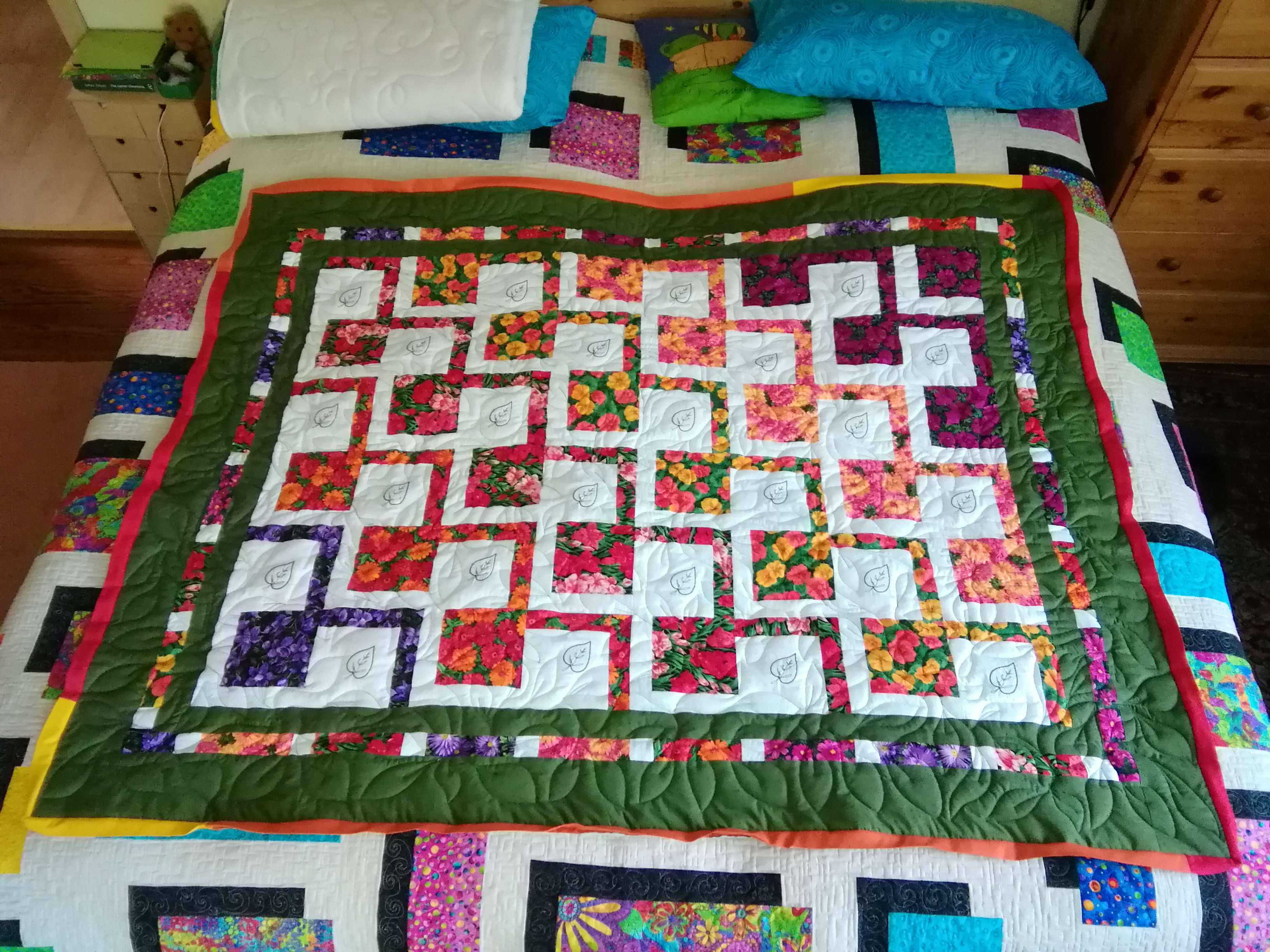 Trotz oder wegen ständigem Farbwechsel und stop and go habe ich 17,5 Stunden gequiltet.